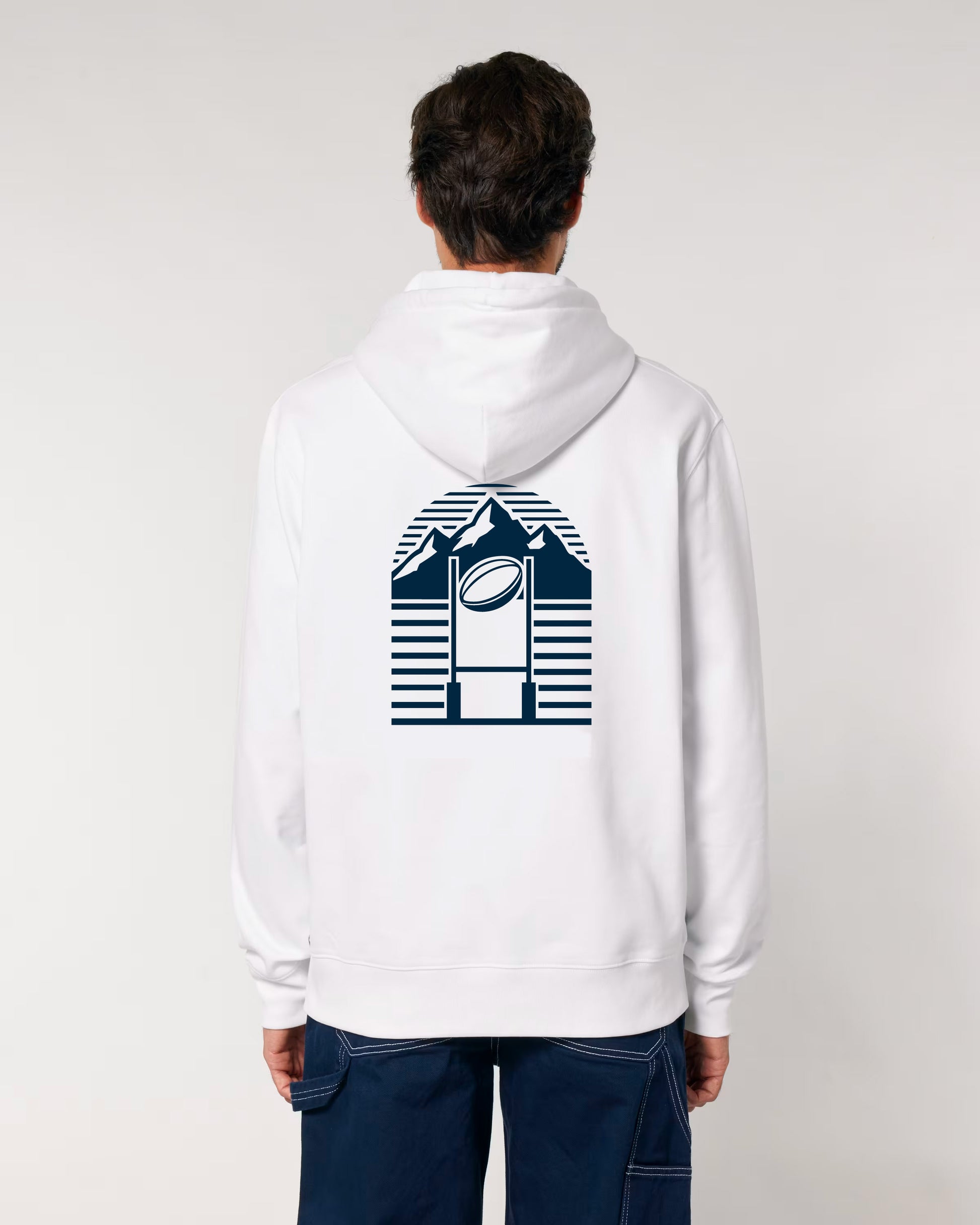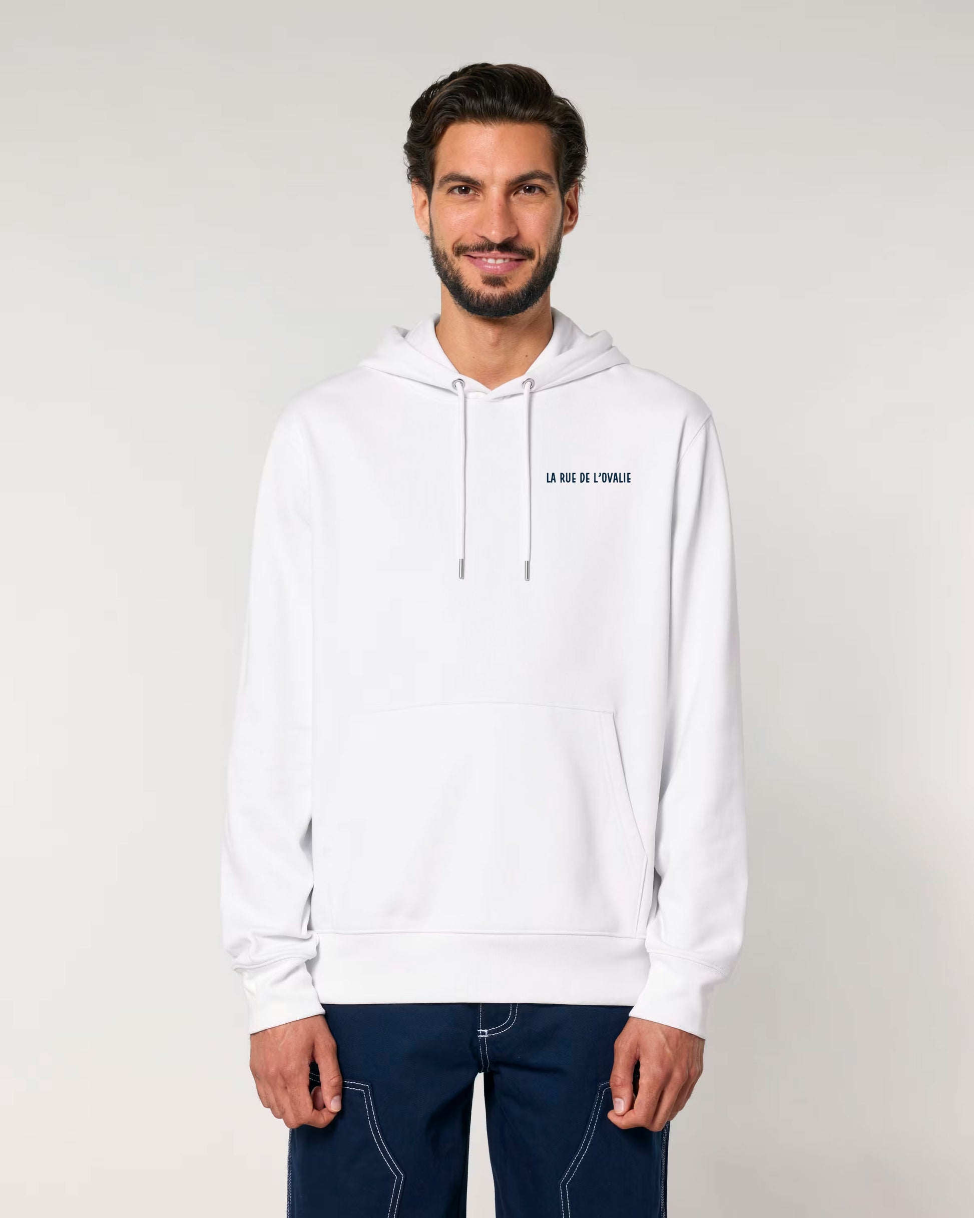 En 100% coton bio et d'une coupe standard, il est doté d'une poche kangourou et des cordons de serrage ronds aux embouts métalliques. L'imprimé La Rue de L'Ovalie est sérigraphié sur la poitrine et notre inscription Yvandurugby emblématique figure sur le haut du dos sous la capuche.